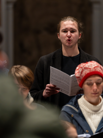 Bereits am Sonntag, 8. Februar, stand als Highlight der Arbeitsphase der erste öffentliche Auftritt an: Unter dem Titel „Wer Ohren hat zu hören…“ gestalteten die Sänger:innen den Gottesdienst in St. Anna Augsburg musikalisch. Es erklang vor allem zeitgenössische, teils virtuos-mitreißend, teils innig-ruhige Chormusik aus Deutschland, Skandinavien und den USA, ergänzt durch liturgische Stücke aus der Feder von Johannes Eppelein. Pfarrer Benjamin Lorenz gestaltete die Liturgie mit einer euphorisch-kämpferischen Predigt: Ein flammendes Plädoyer für die Bedeutung der Kirchenmusik, die auch in Zeiten von kirchlichen Sparzwängen, gerade mit derartigen Neuaufbrüchen wie der Gründung der Landesjugendkantorei Mut machen und Hoffnung schenken könne.
