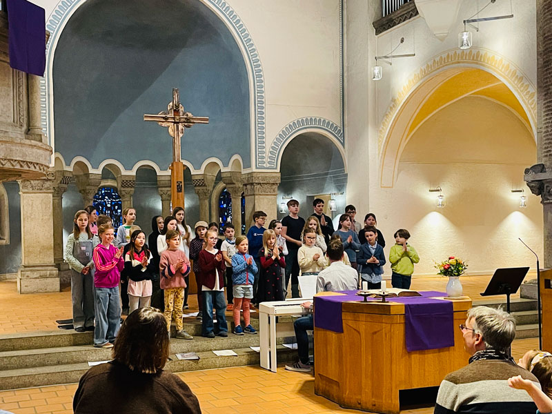 Zum ersten Kindersingtag „Sing for Spring“ in der St. Johanneskirche München-Haidhausen kamen am Samstag, 14. März 2026 unter der Leitung von Kantor Johannes Janeck 30 Kinder im Alter von 8-12 Jahren zusammen, um einen fröhlichen und bunten Tag voller Gesang zu erleben.